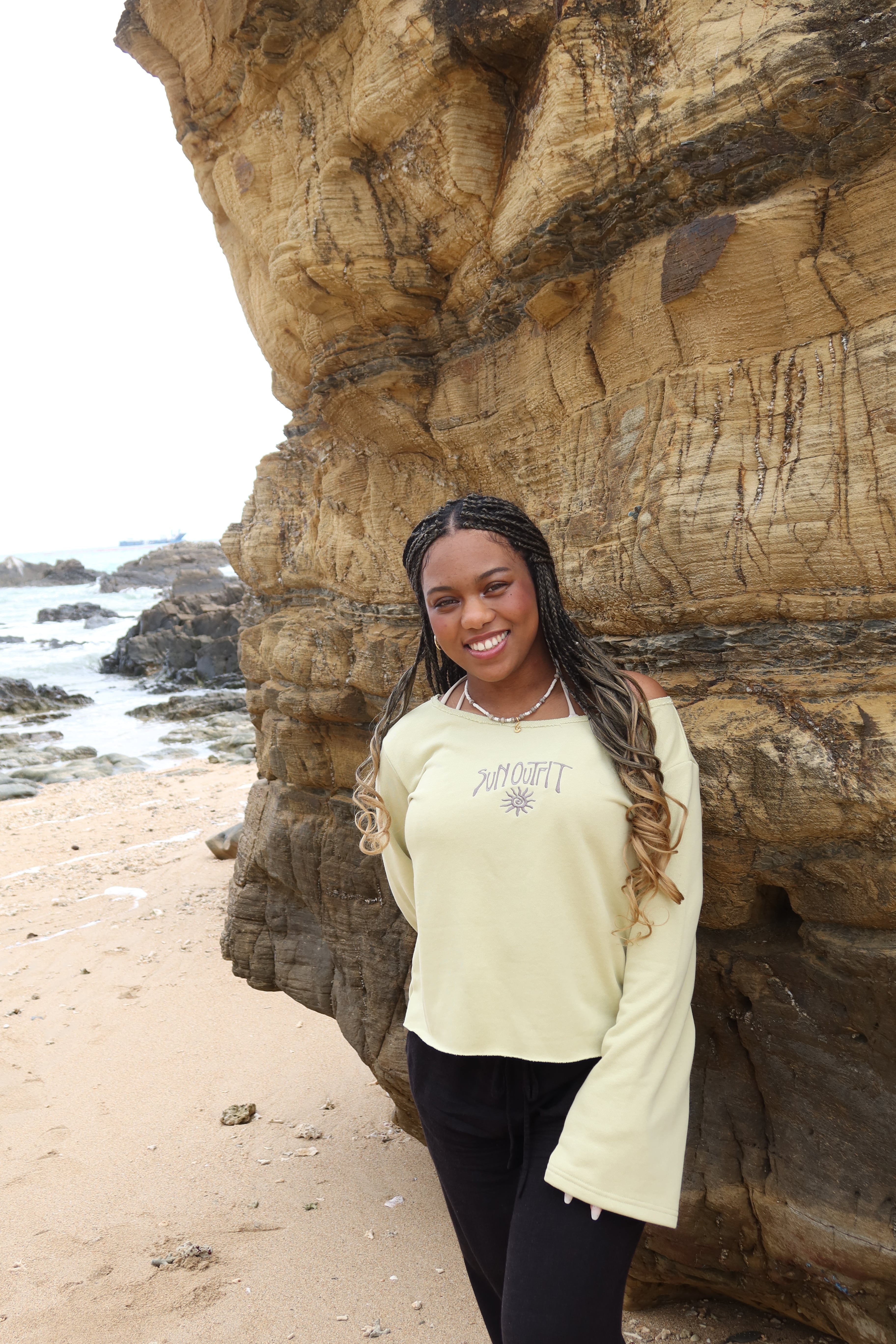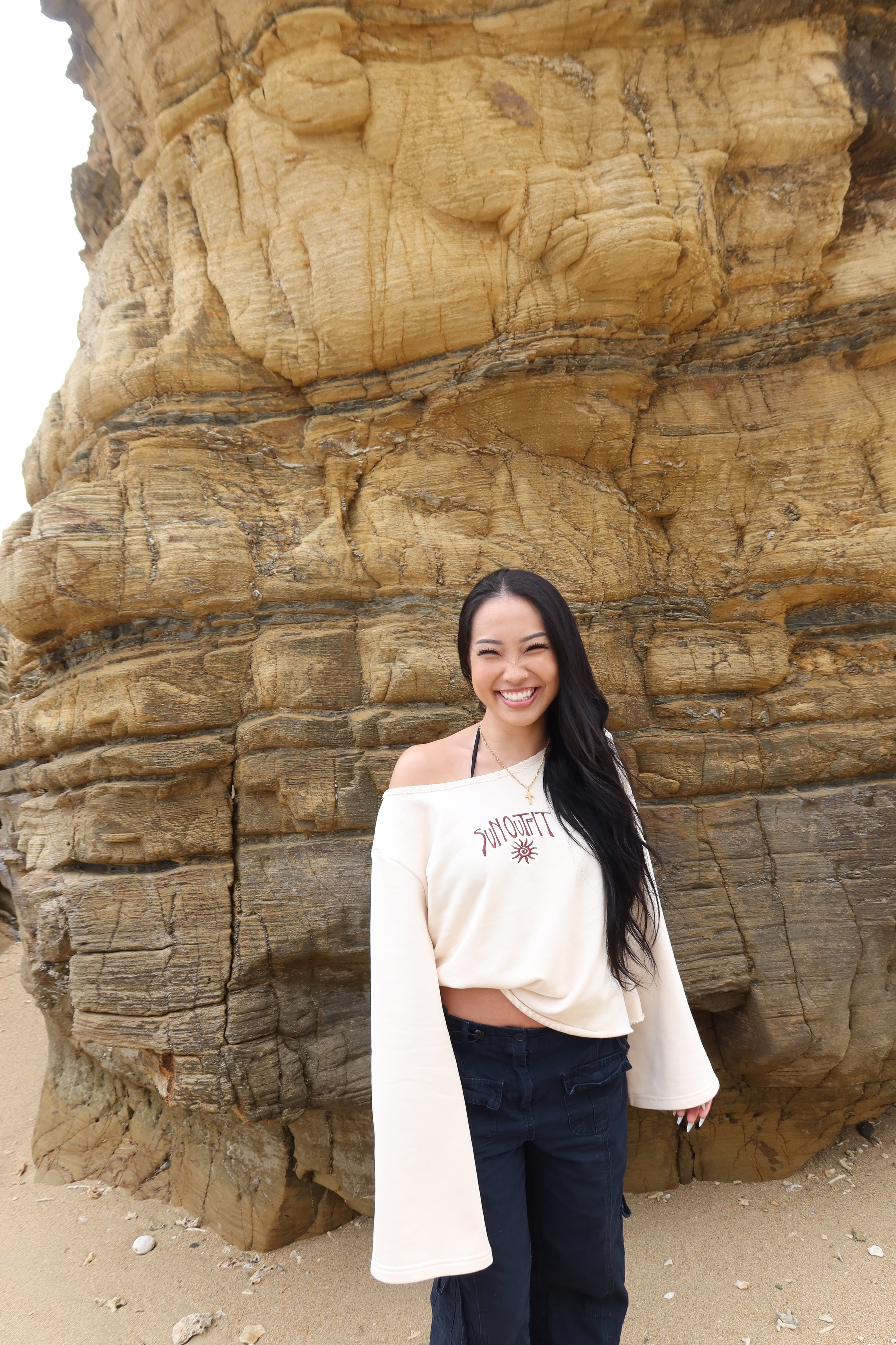 サンセットに映える、やわらかいカラー展開のトップスになってます。